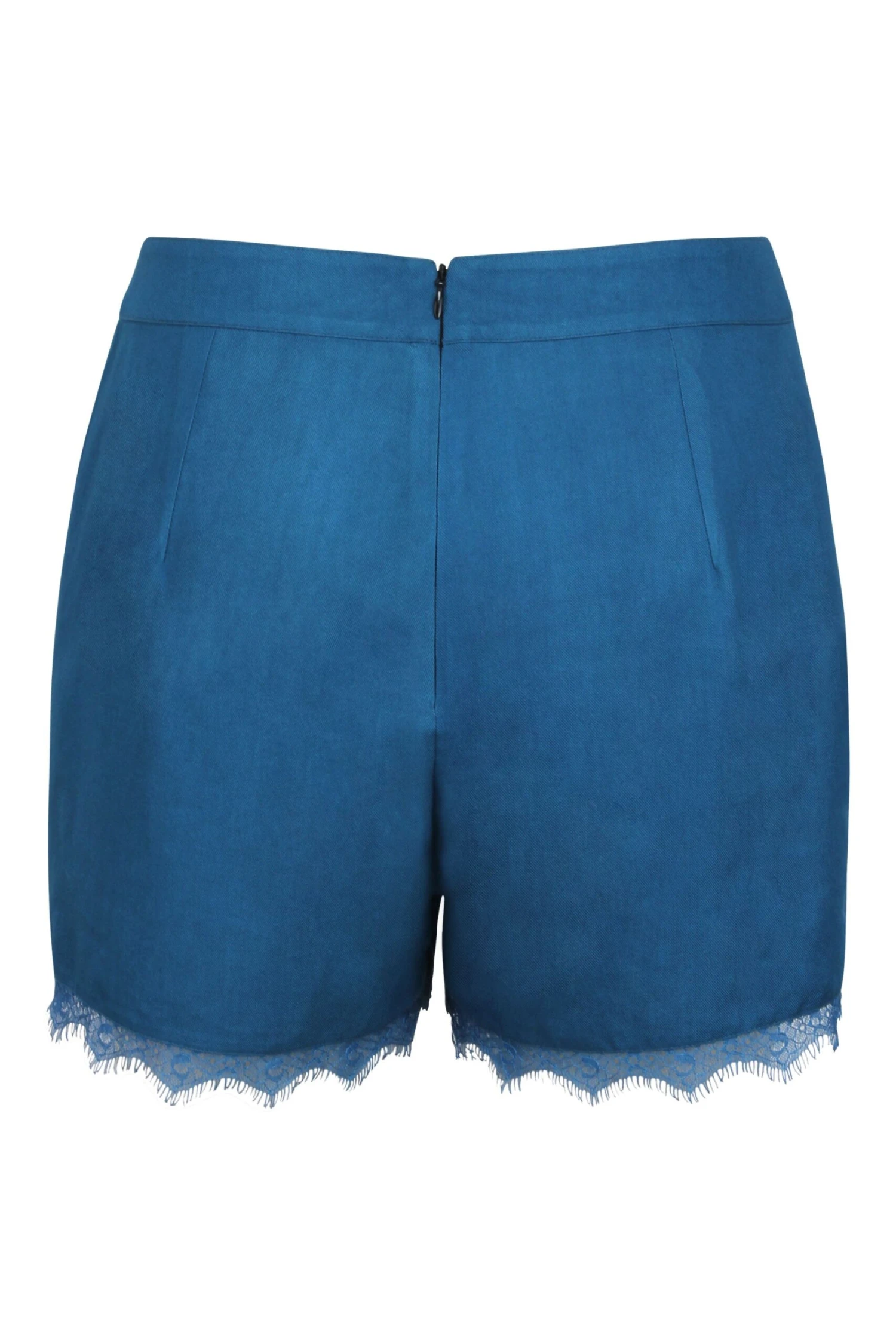 Turn heads in Teal… We are obsessed with these beautiful shorts, the tailored shape fits like a glove and the colour is a spectacular style statement. The shorts feature overlay panels with an eyelash lace trim and a back invisible zip. The style makes a perfect set when styled with the Dorothea cropped corset.
