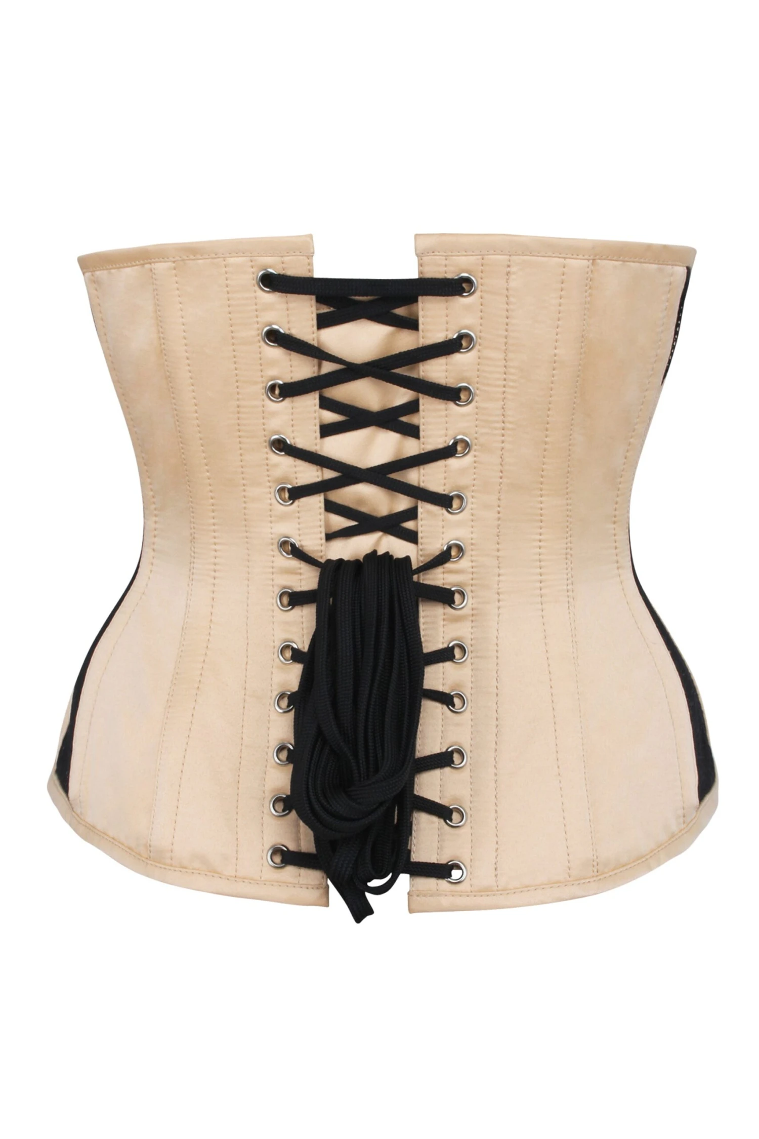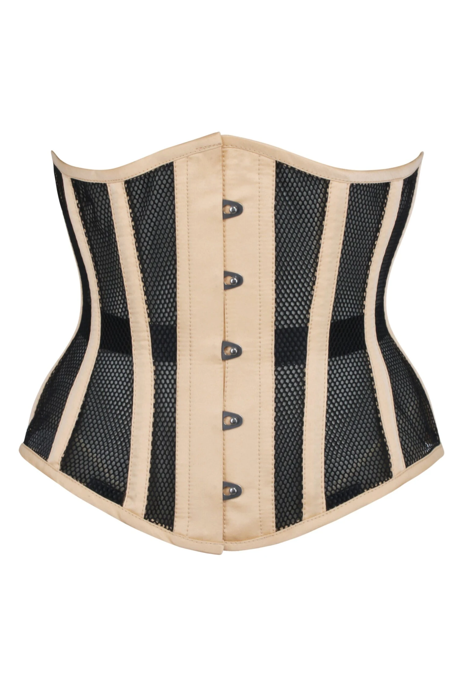 This sexy and seductive beige mesh underbust will be sure to gain you all the attention. The mesh layer allows you to flash the flesh without being too under dressed. Also recommended as a lighter weight waist training piece.