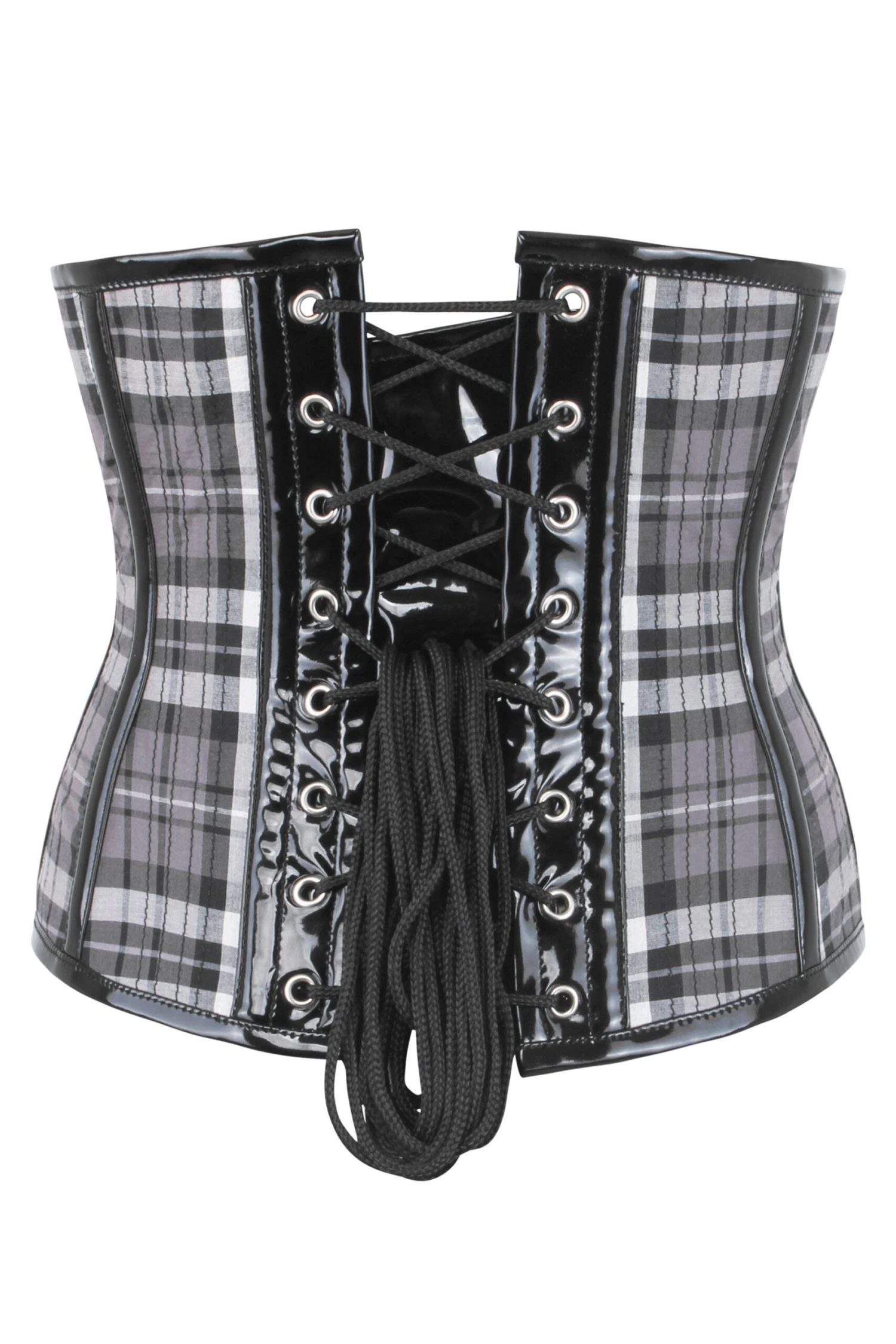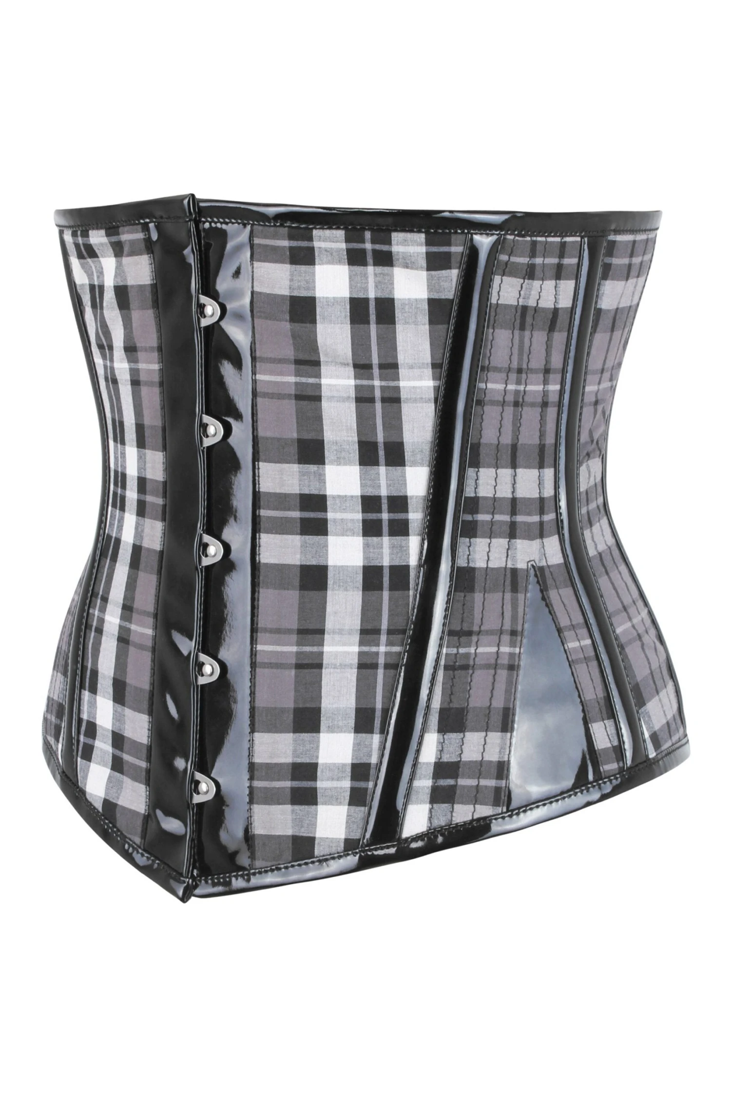 - Corset Design Features: Plaid Pattern Design, Contrast PVC Binding