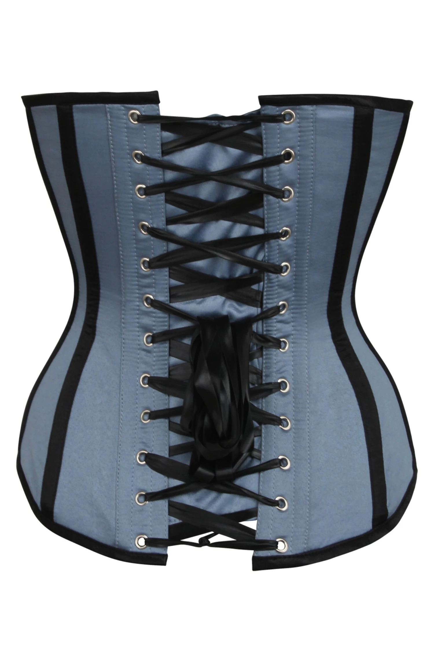 Make a statement in the ultimate figure-flattering piece; the Grey Waist Taming Overbust Corset. Featuring a black lace top, continuous eye and hook front closure and adjustable waist cinching laces at the back; this timeless garment shapes your natural curves without compromising on comfort. Perfect for special occasions or everyday wear, get ready to look and feel your best with the Grey Waist Taming Overbust Corset today!