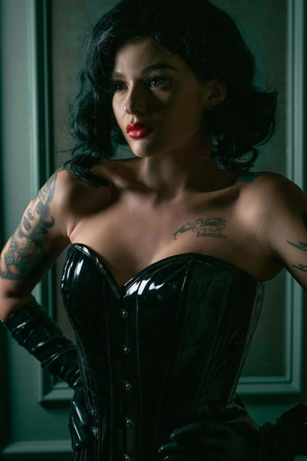 Our Expert Waist Training Overbust corset offers sensational results and a waist reduction of up to 5 inches. The super strength steel bones of the corset are enclosed in a soft cotton twill lining. We believe in comfort, especially if you are new to waist training. Special hip gores, developed in-house by our designers, give a snug and flattering fit around the hips and waist. Ideally worn as outerwear, the Overbust PVC corset gives you a wasp waist and an audacious statement look ready for the evening ahead.