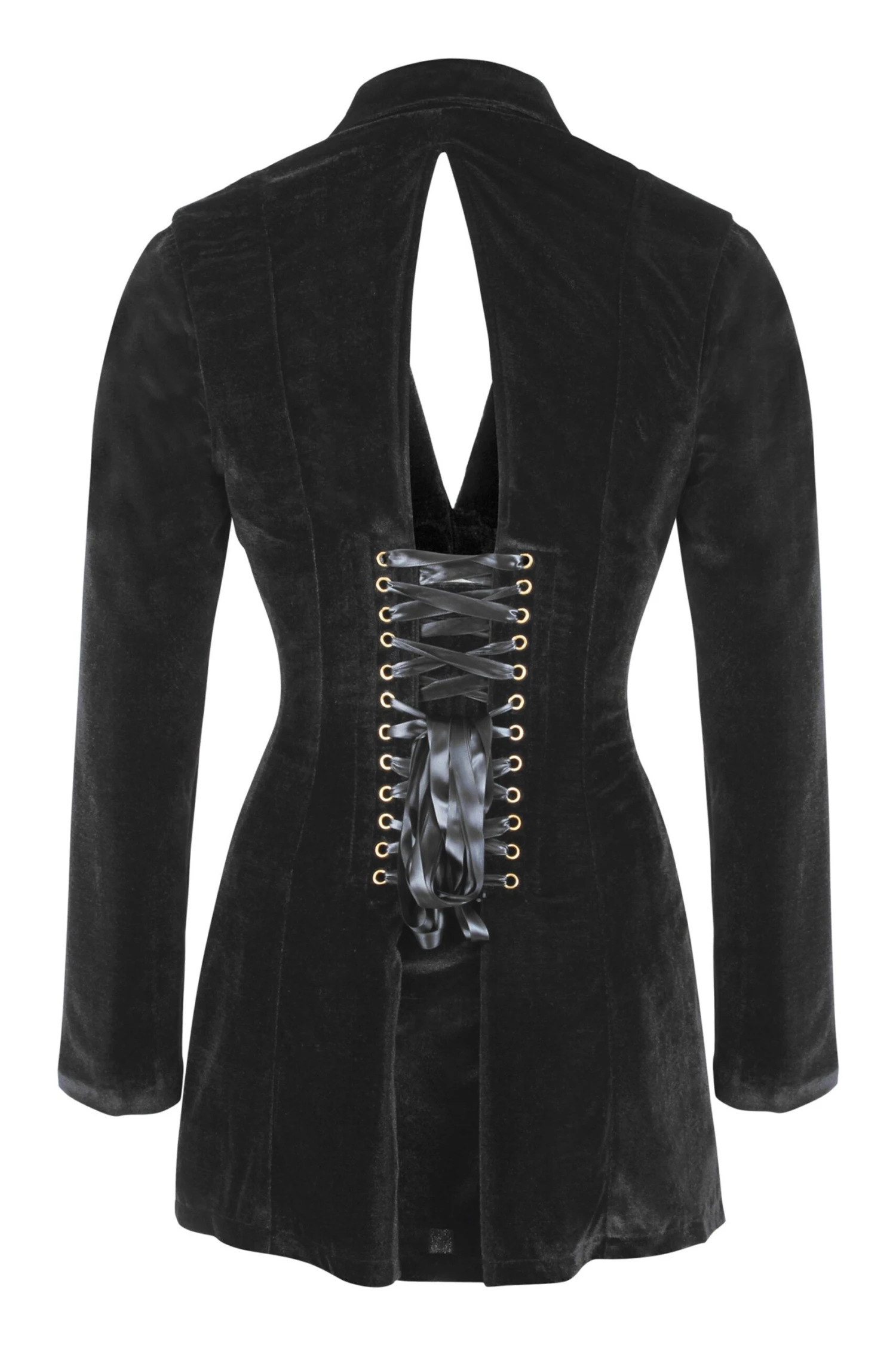 - Corset Features: Ribbon Lacing,Steel Busk, Velvet Blazer with Integrated Underbust Corset