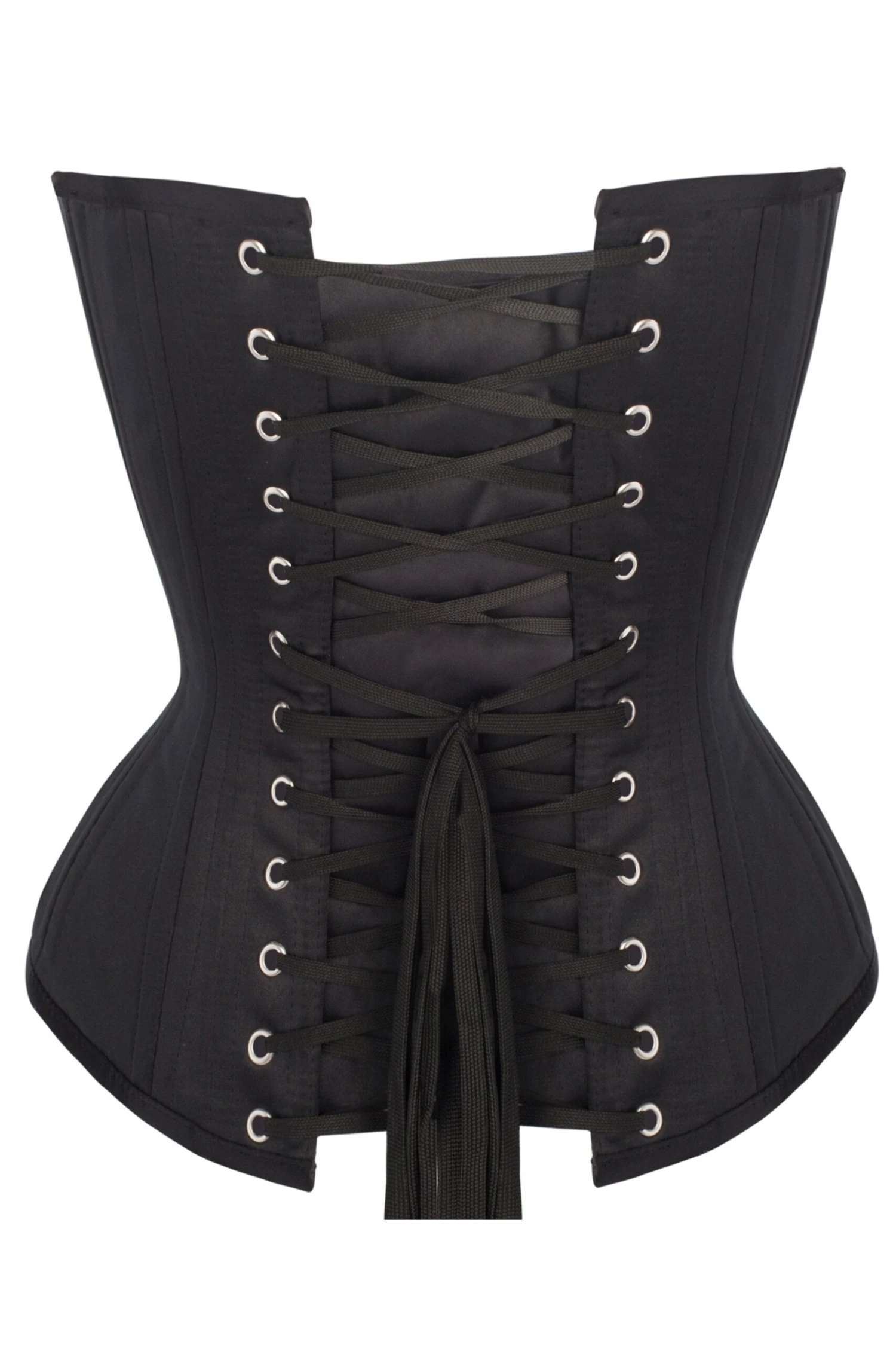 This magnificent black satin waist training underbust corset is made with the strongest spiral steel boning for the ultimate waist reduction and body shaping experience. It offers a potential 5″ reduction in waist size when laced at its tightest and is one of our elite range of waist training corsets. It can be worn either as an undergarment or as the centrepiece to an outfit. If you are unsure about waist training or have any questions, do not hesitate to contact us for advice.