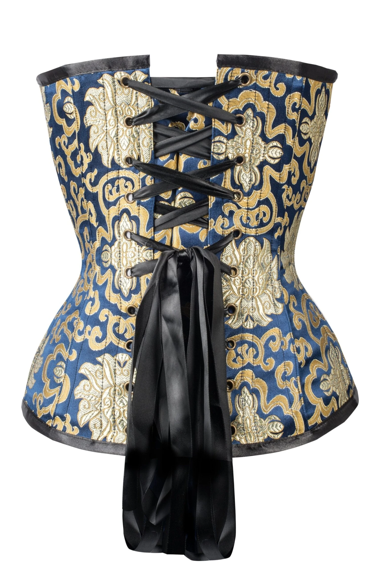 Inspired by the Regency and Victorian periods, this gorgeous Instant Shape corset is crafted in a fetching blue and gold brocade pattern, adding extra femininity to an already stunning garment. Internal steel bones are very light, allowing prolonged wearing and command an instant waist reduction of 1-2 inches. Paired with a long skirt, this corset is perfect for formal occasions and you’ll definitely stand out thanks to its unique colours. This corset will help improve the ‘golden’ waist to hip ratio with very little fuss; you won’t need a friend to help you into (or out of) this garment so you can pair it with as little or as much of your current wardrobe to create many different looks.