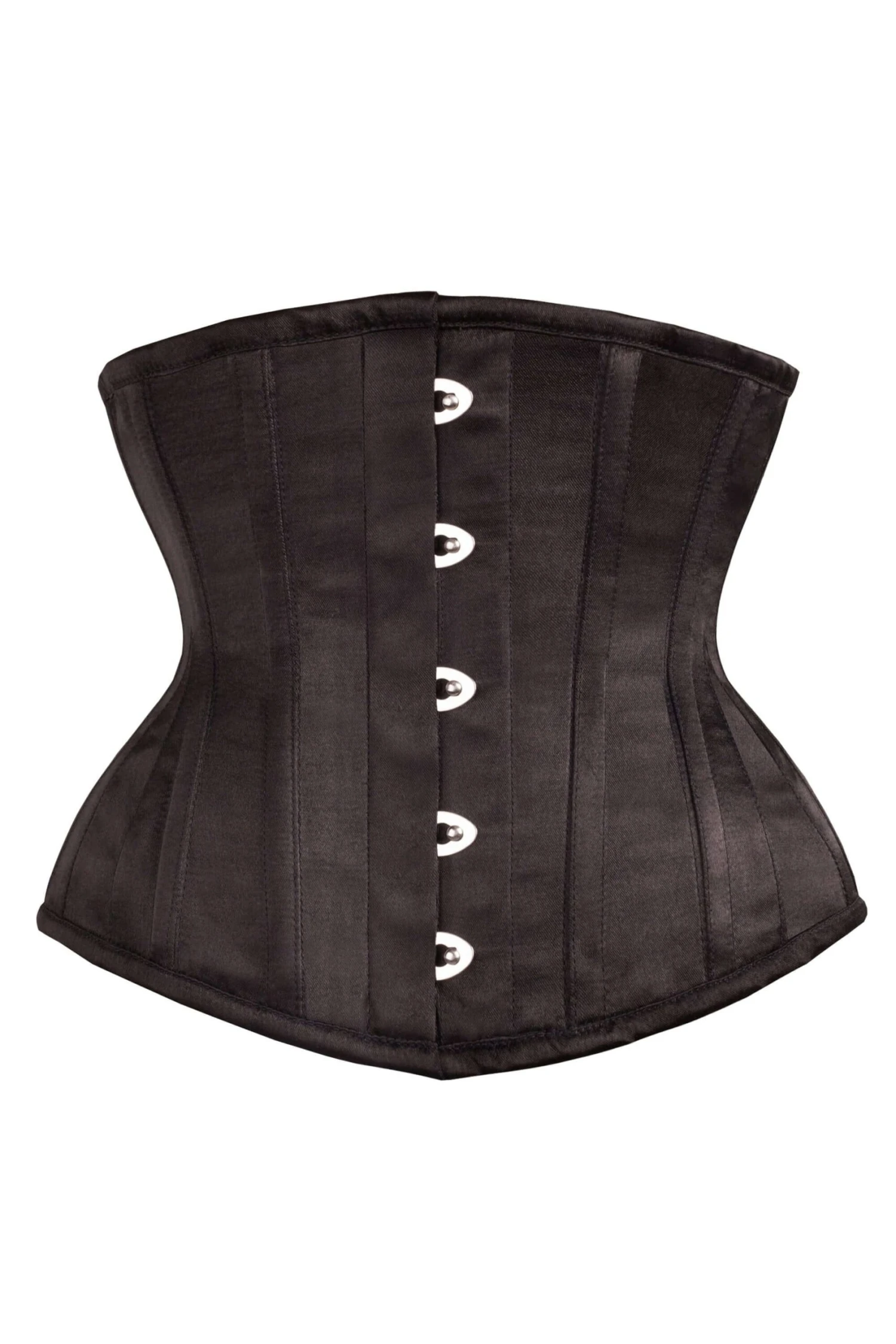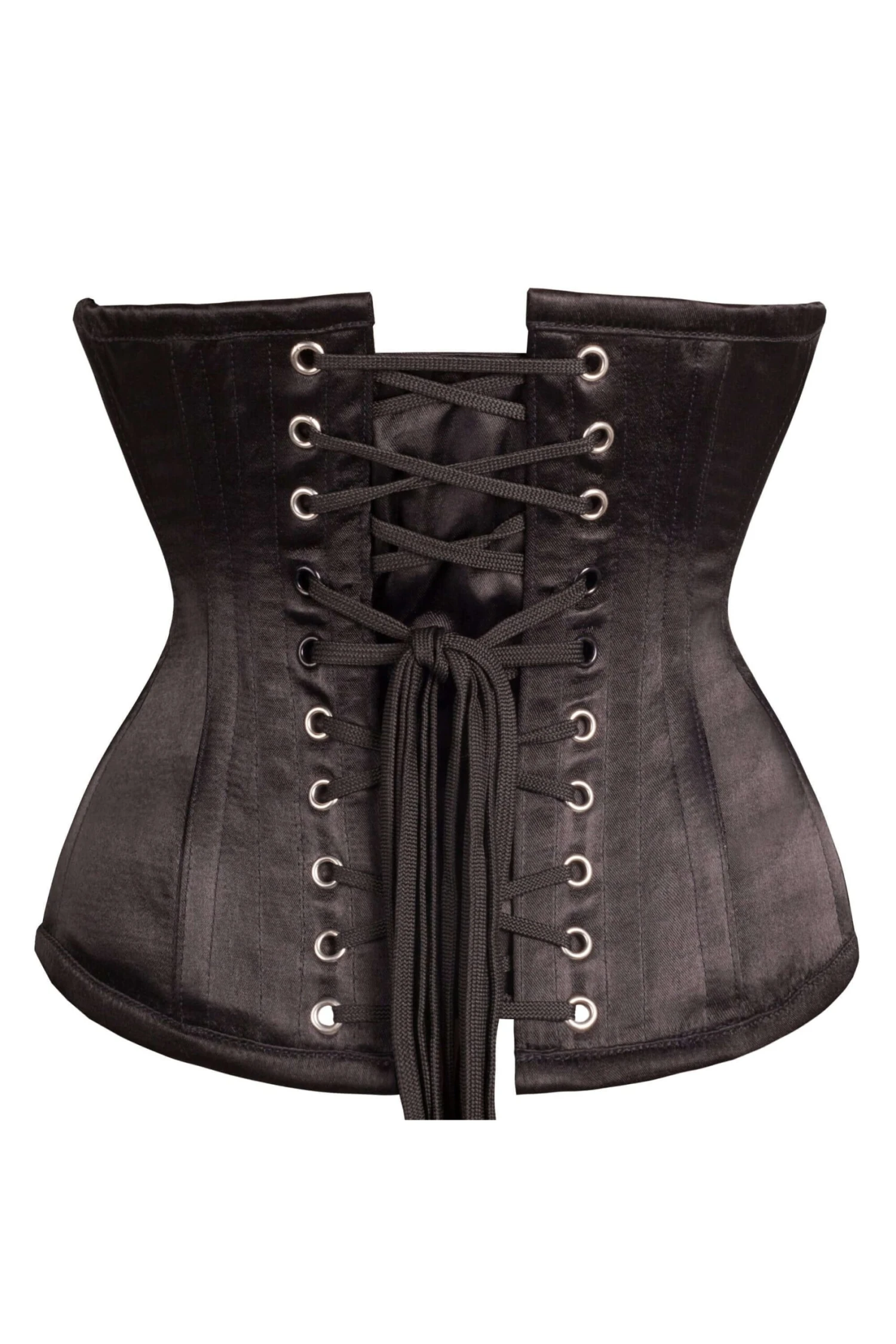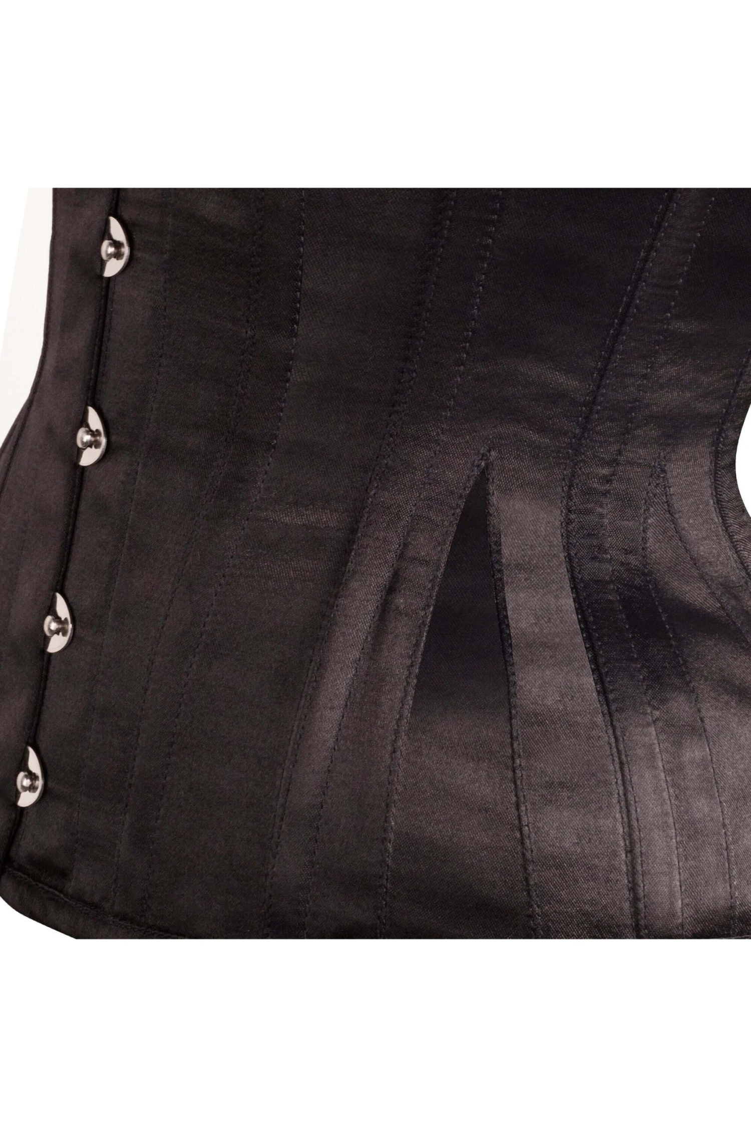 - Corset Design Features: Satin Finish, Curved Hem, Hip Gores