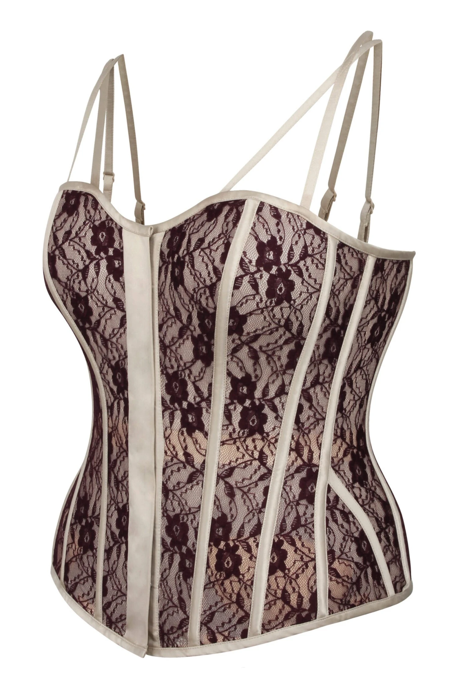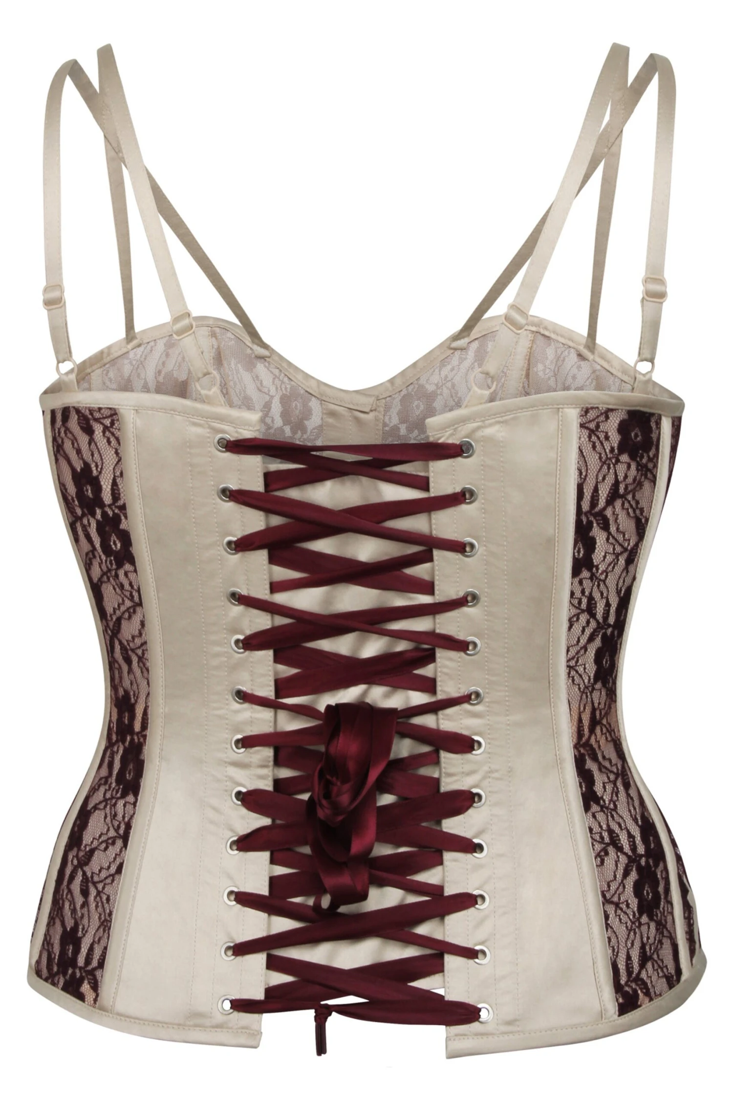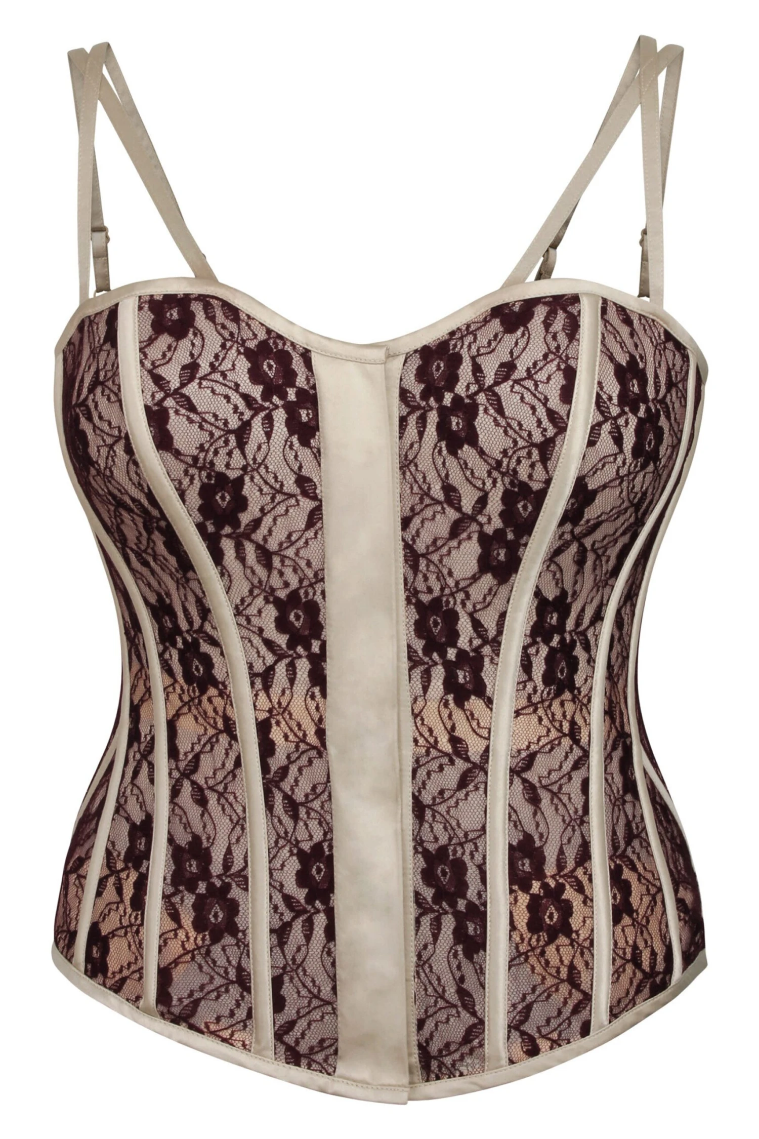 Make a statement with the Clementine Champagne Satin and Lace Overbust Corset with Spaghetti Straps. The Steampunk style lace and corset will have you looking like a modern-day Victorian. The perfect lingerie as outerwear piece for any nightlife or special occasion outfit. Step out in style with the unique and eye-catching Clementine Champagne Satin and Lace Overbust Corset. Feel amazing, look unforgettable!