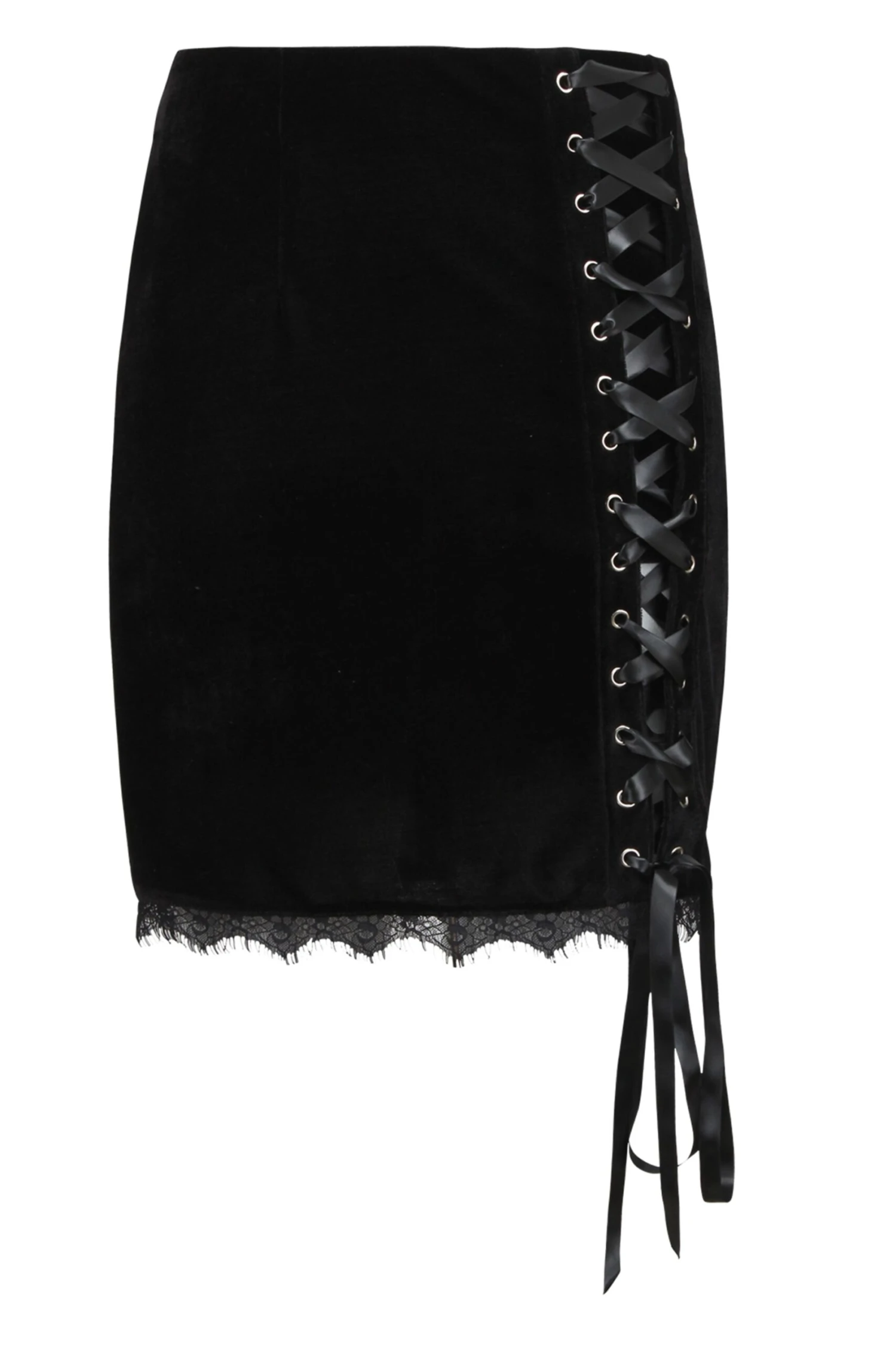 Subtle and sexy, our black corset inspired skirt features traditional corset ribbon lacing up one side and a zipper at the back. This velvet skirt is about to be an elevated staple in your wardrobe, we promise you will reach for this time and time again.