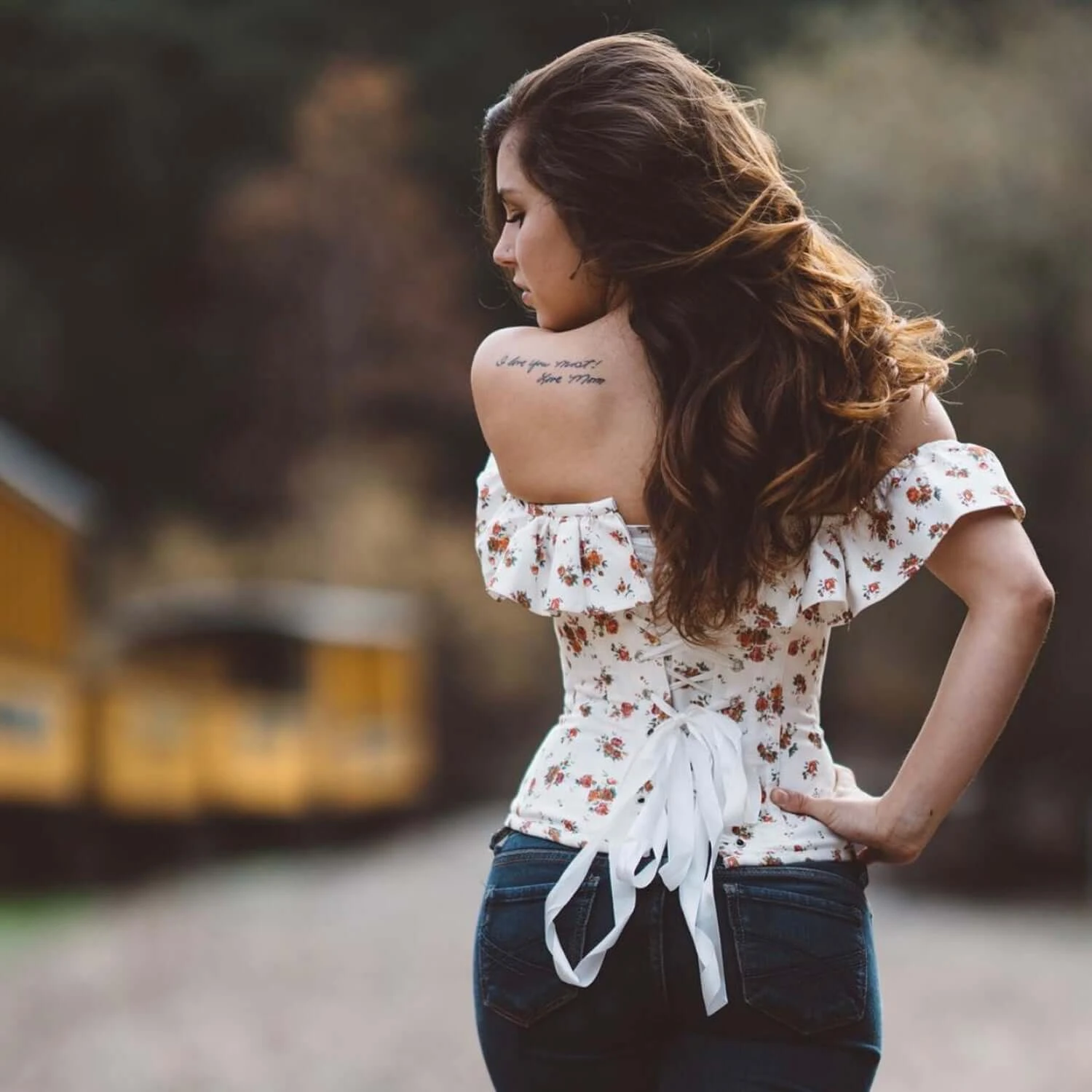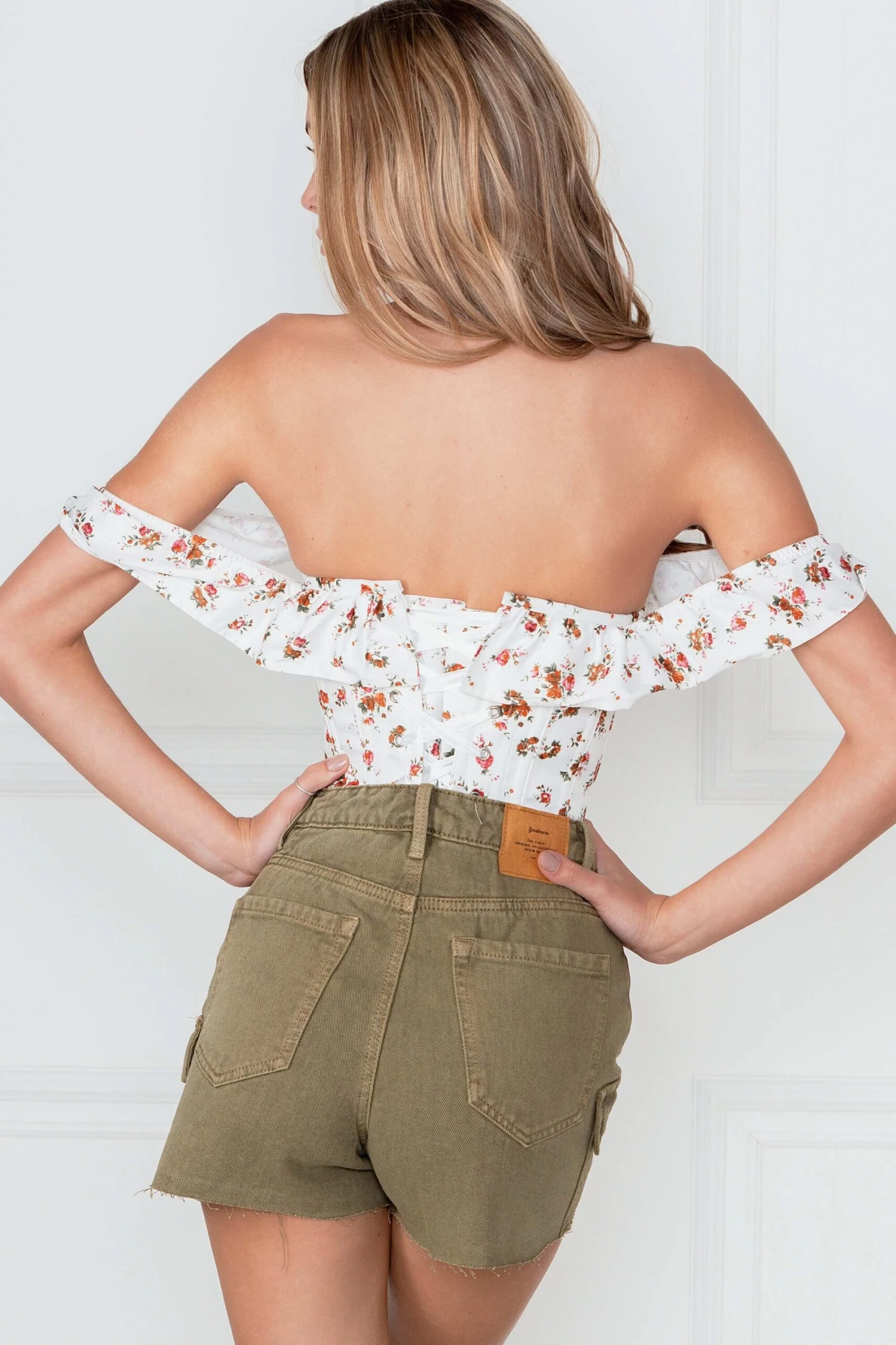 - Corset Design Features: Elasticated Ruffle Sleeves, Ditsy Floral Print