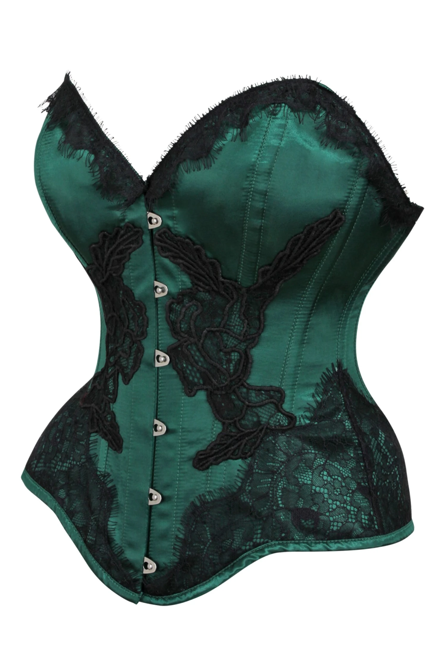 Get an hourglass figure with absolute ease! Look your retro-chic best no matter the occasion with our Green Satin Overbust Corset. With its intricate black detailing, you can add a touch of class and charm to your ensemble. Flaunt a unique style look at your next event and watch the compliments come flooding in. Get yourself the very best in comfort and sexiness with Green Satin Overbust Corset!