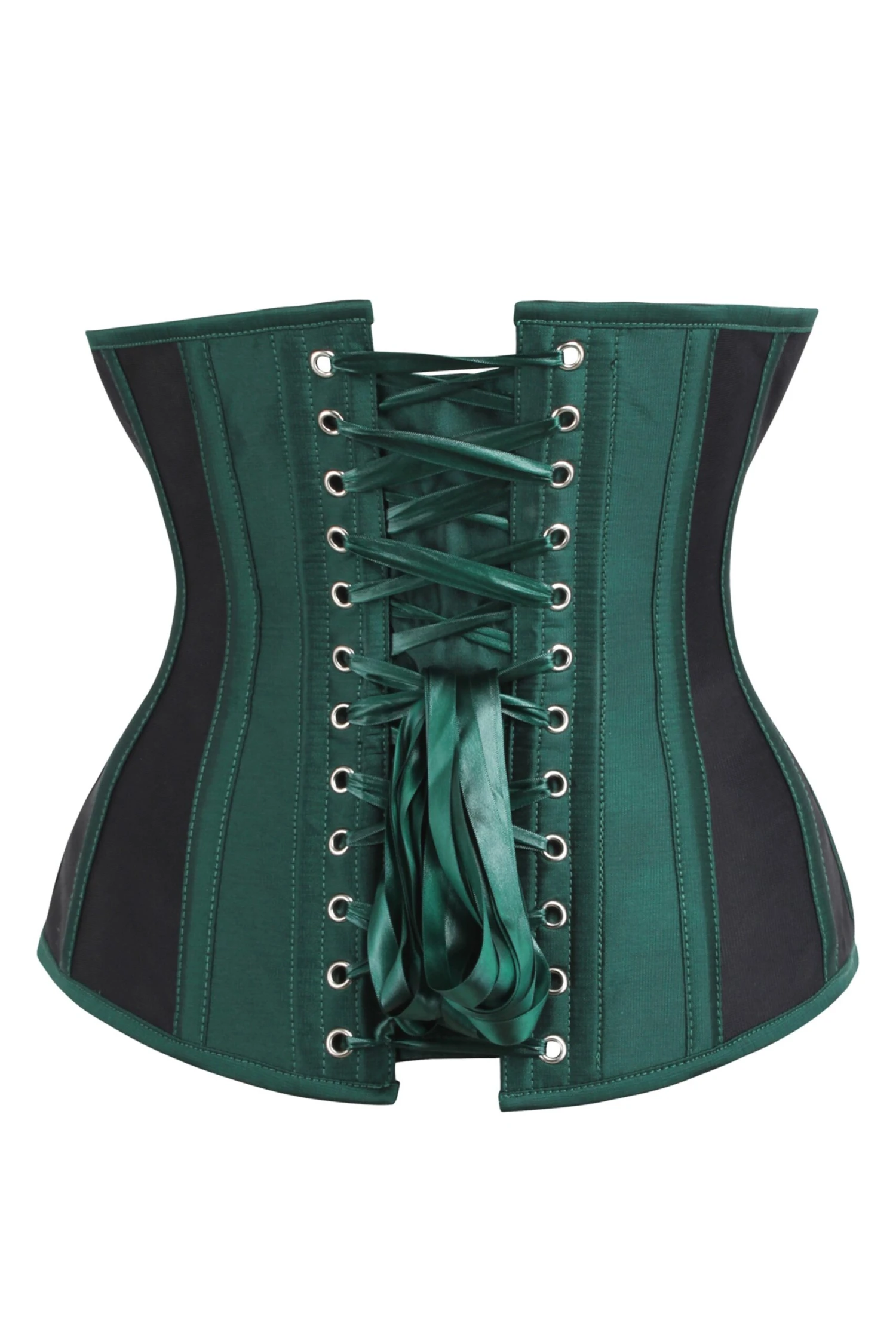 This Green Taffeta and Mesh Underbust Corset is perfect as both a lingerie piece or as part of your outfit. Thanks to its combination of flat and spiral steel boning and its hip panels, it offers the ultimate body-shaping and support while remaining flexible and comfortable, long after you put it on.