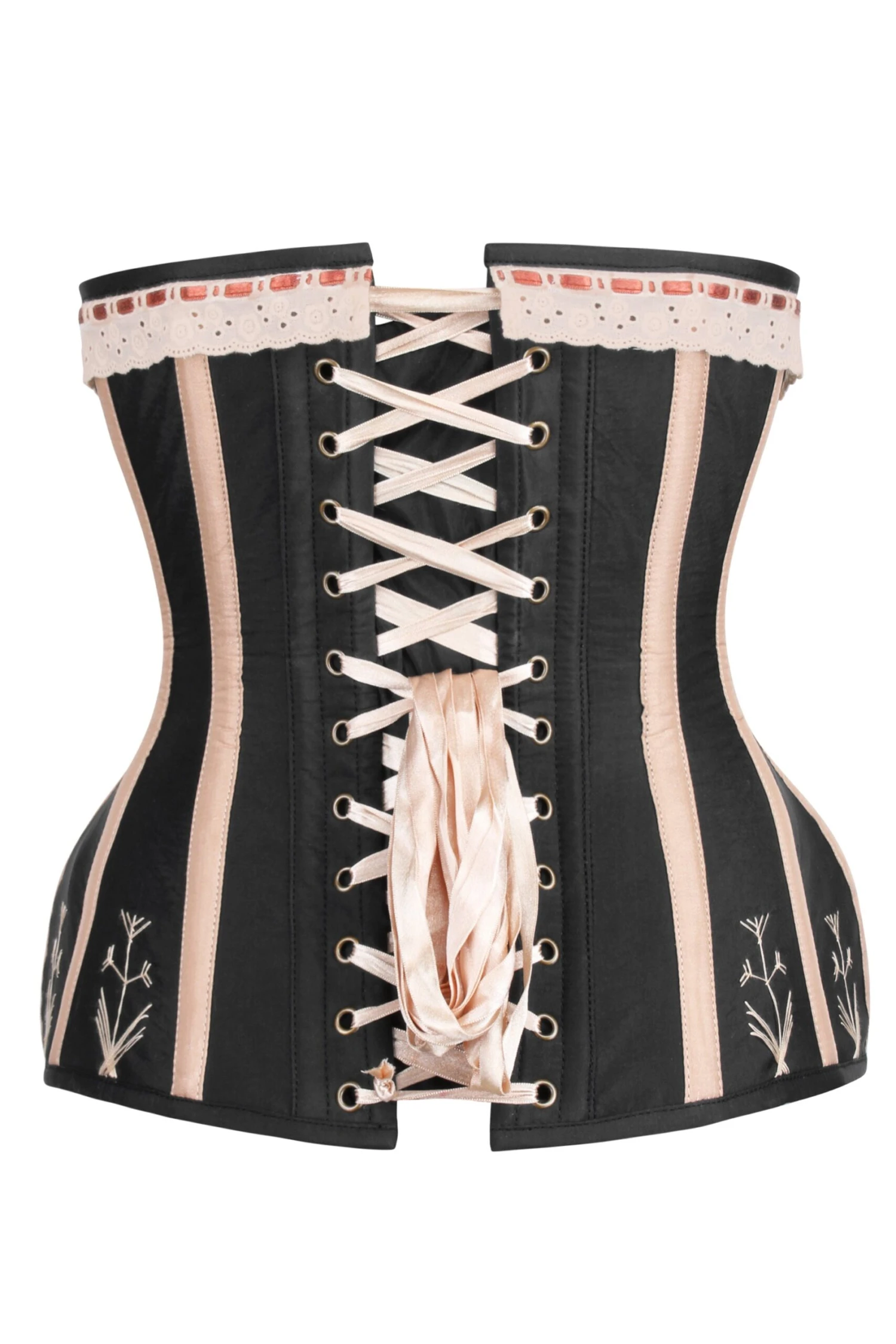 - Corset Features: Ribbon Lacing,Hip Gores,Steel Busk,Corset Flossing