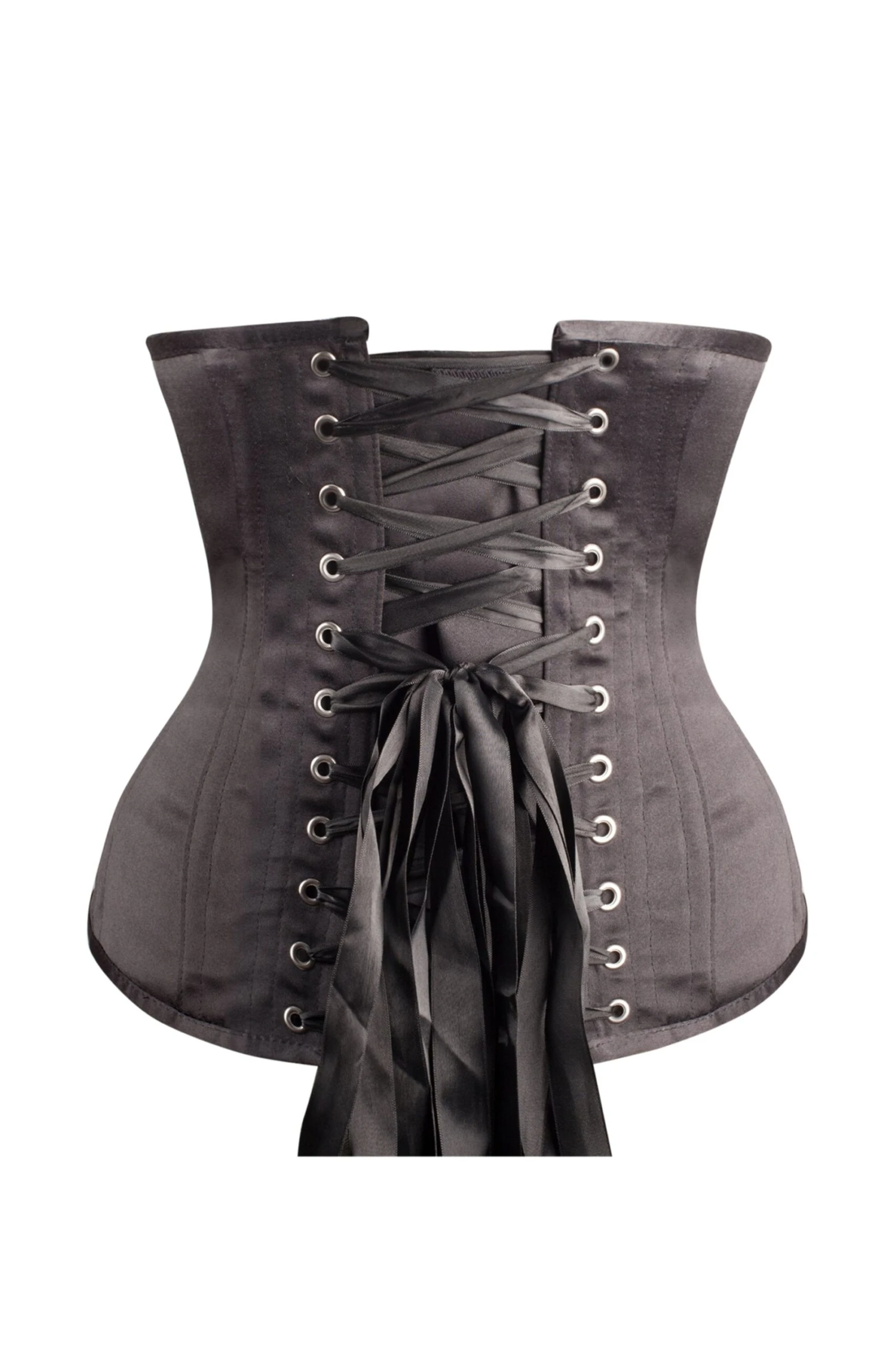 Our entry level Instant Shape black satin longline underbust is perfect for you ladies with a longer torso – ideal for ladies 5′ 6″ or taller. The curved top edge sits beautifully under your bust-line and the longer pattern really smooths the figure. Instant Shape corsets are a great lightweight option due to a narrower and lighter busk closure and single spiral steel bones at each seam. It can reduce your waist up to 2″; perfect if this is your first corset or if you are an experienced wearer and want something that is both lighter and extremely comfortable. It comes with ribbon lacing at the back that is easy to conceal underneath your outfits.