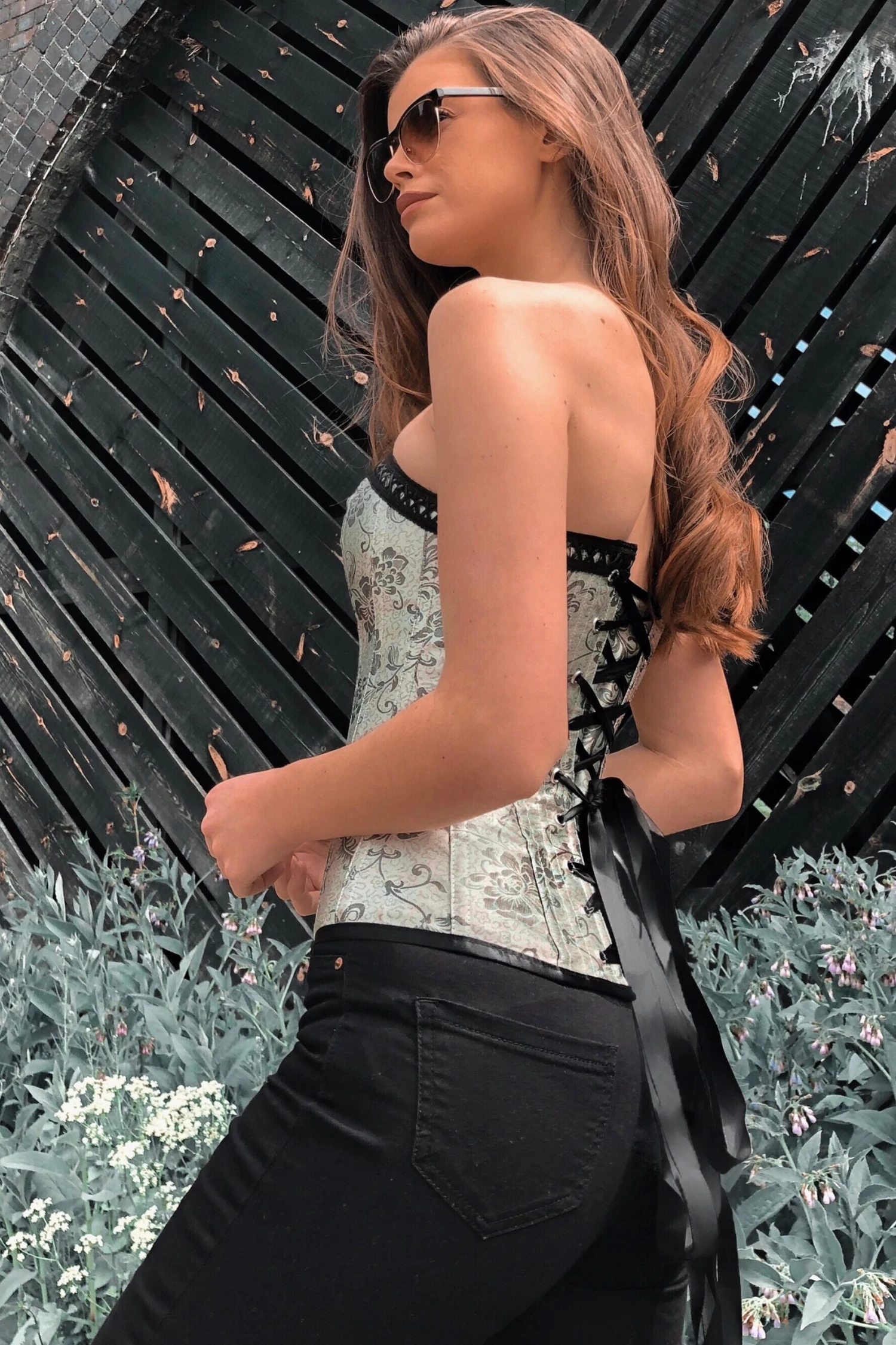 - Corset Design Features: Satin Finish, Contrast Lace Trim