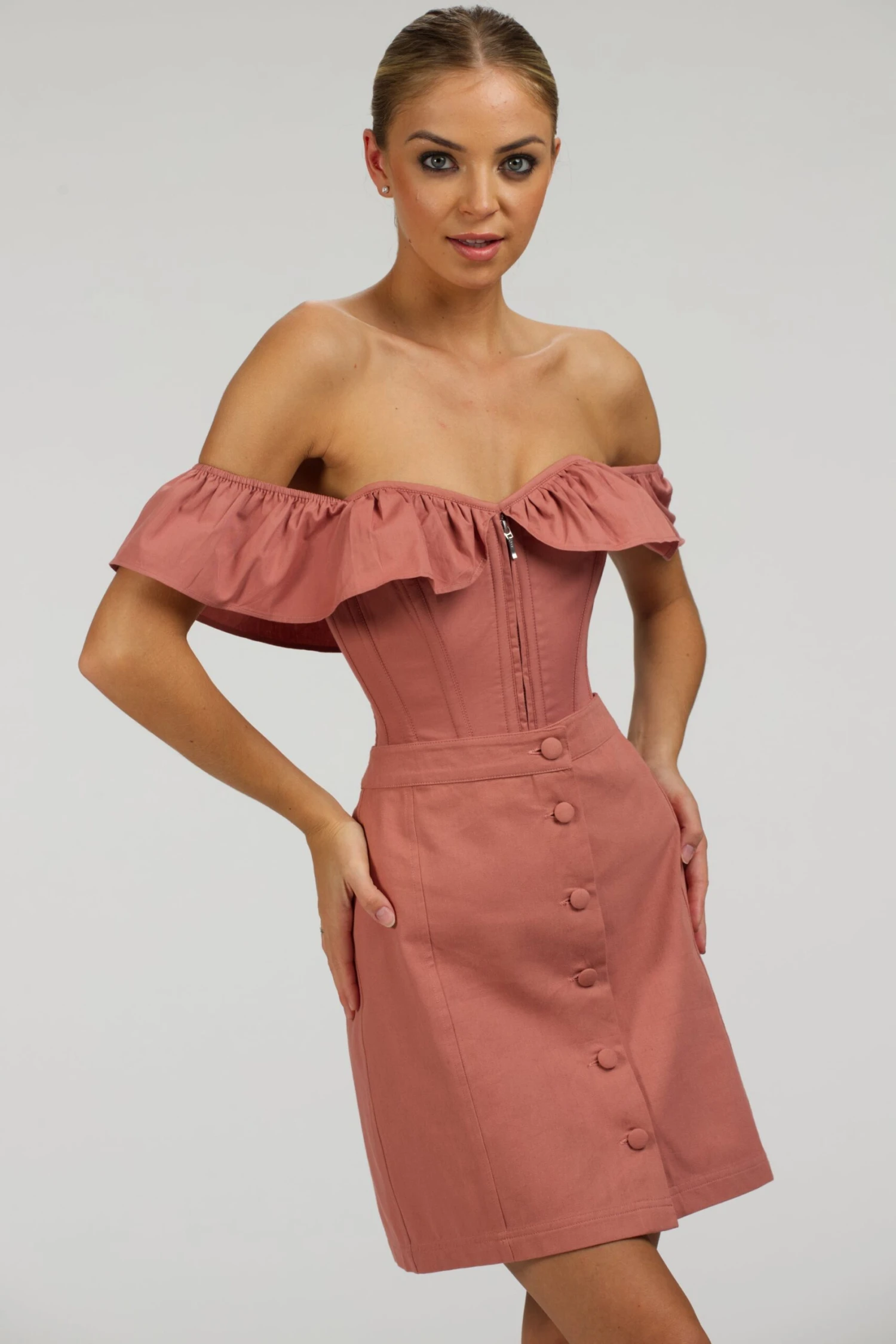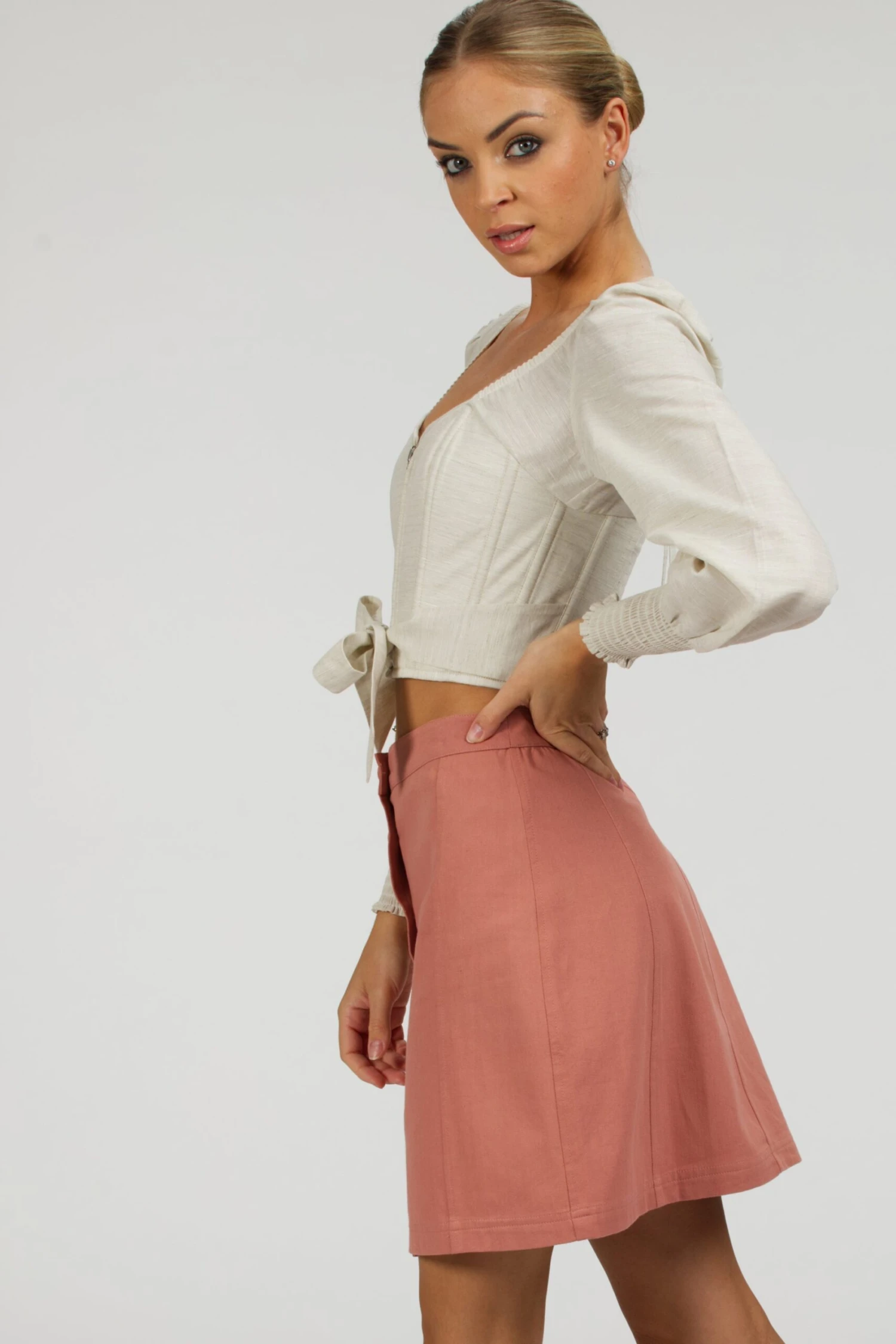 The A-line shape of the Poppy skirt makes it a great piece to style over our corsets. The self covered buttons add a subtle finishing touch. Made from a heavy cotton twill, this is a colourful alternative to a denim mini skirt.