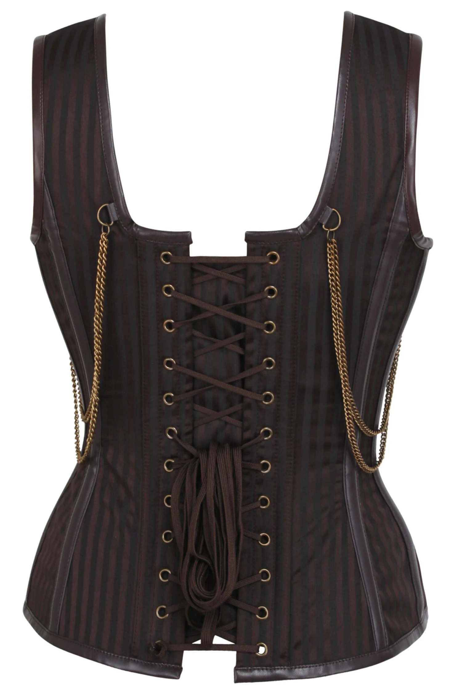 Step into style with Steampunk’s Brown Corset! A truly unique and mesmerising design combined with Jacquard detailing, sturdy shoulder straps and PVC details, will take your wardrobe to the next level. Whether you’re dressing up for a costume party, or wearing it under a contemporary look for everyday fashion, this versatile corset is the perfect addition to your wardrobe! Stand out from the rest with Steampunk’s Brown Corset and make a statement like never before.