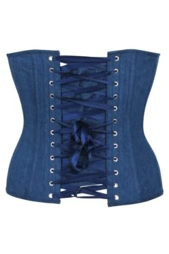 Dahlia Blue Chambray Overbust Corset With Zip Front