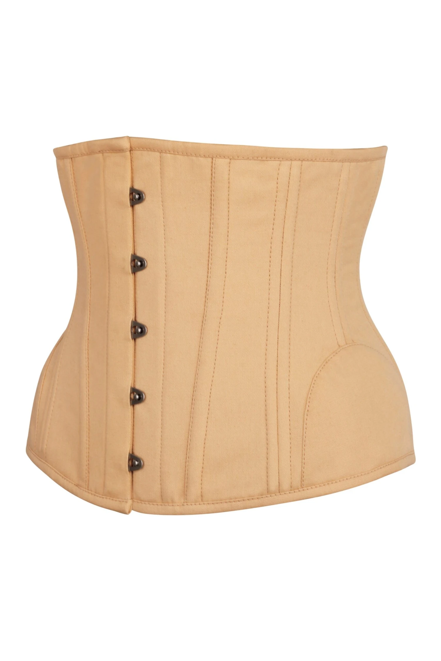 A simple but stunning addition to our Expert Waist Training range. Exclusive and of a superior quality to most off-the-peg corsets, this beige underbust is soft to the touch but very strong and durable. Made from the finest cotton twill, its main features are the curved hem and hip panels which will accentuate your new hourglass figure. Laced properly, this corset can achieve up to a 5 inch waist reduction. As with all of our underbust corsets, it can be worn as an undergarment beneath a regular outfit to give the appearance of a more shapely figure, but can also be worn as outerwear, nestled beneath a lighter coloured blouse or skirt. However you wear it is up to you, but one thing is guaranteed; you will be thrilled with your new look. A must for any wardrobe.